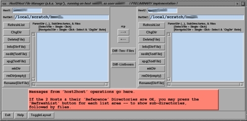 A two-list-box GUI that can be used to show files in directories on Host2Host FileManager GUI (a.k.a. 'xrcp') -- Tk Script Code :