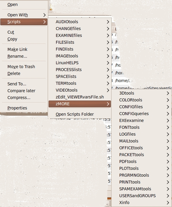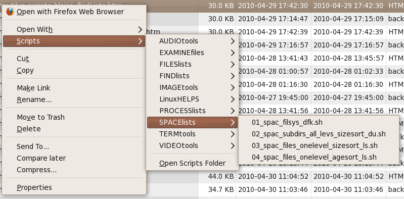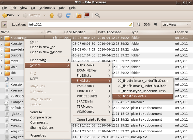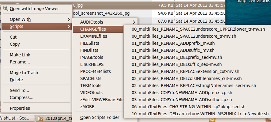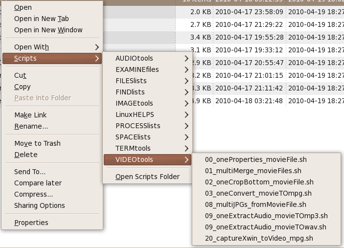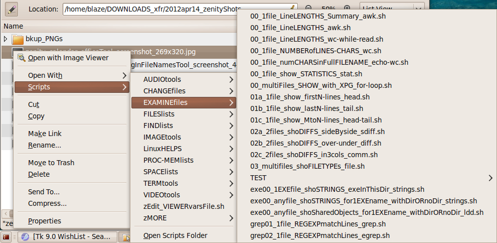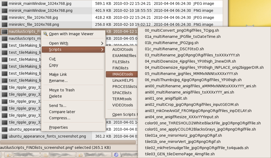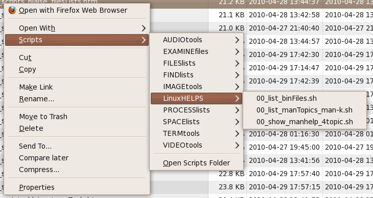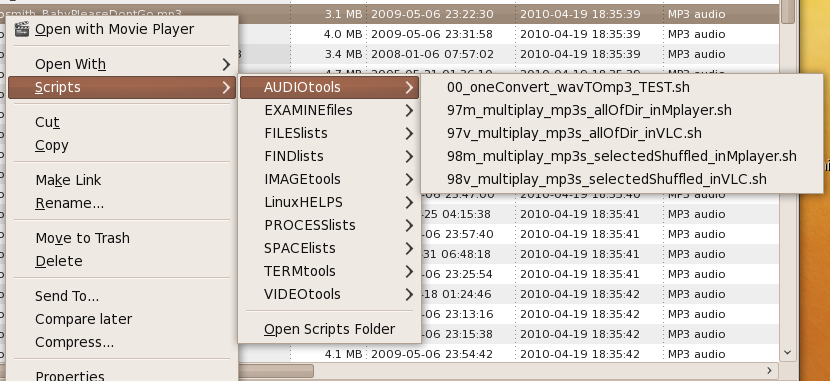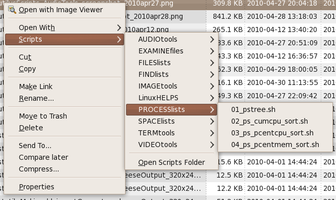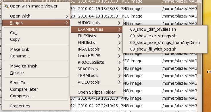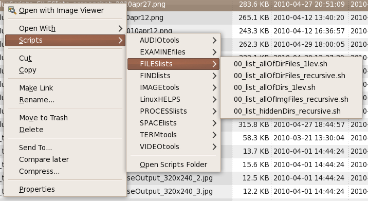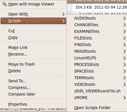 The 'top-level' 'feNautilusScripts' menu holds eleven
