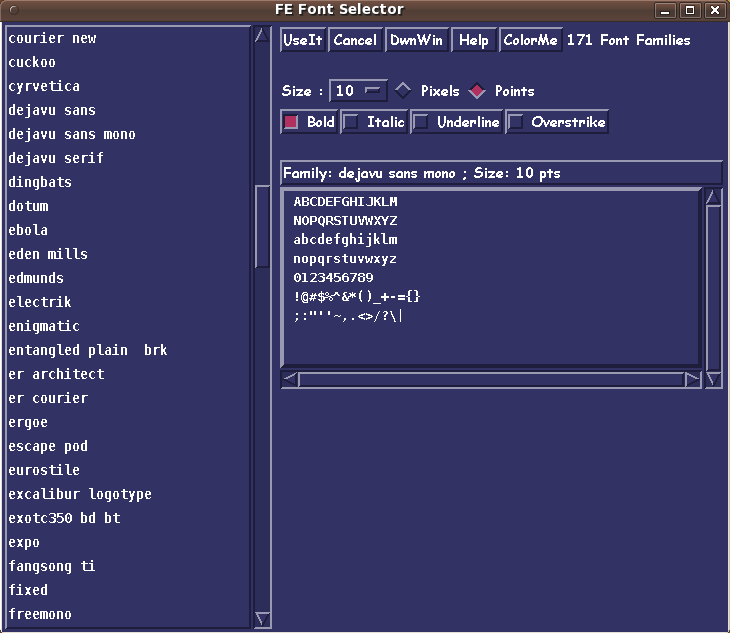 The 'feColorSelector' and 'feFontSelector' utilities are available