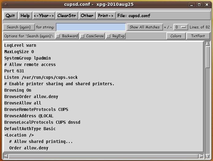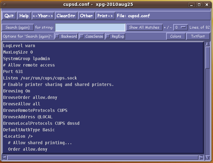The 'xpg' GUI --- before the 'Other' button has been activated.